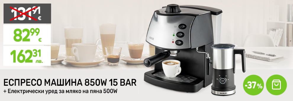 Промо-комплект Muhler Еспресо машина MCM-1587 + Кана за мляко на пяна MFF-44S