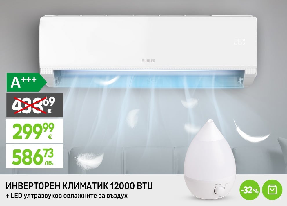 Промо-комплект MUHLER Климатик Инверторен A++ MAC-12SI + Овлажнител за въздух MHD-676