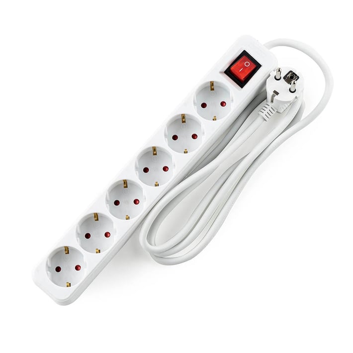Portable multiple socket outlets with 6-way shuttered outlets. And 2-pole disconnection switch